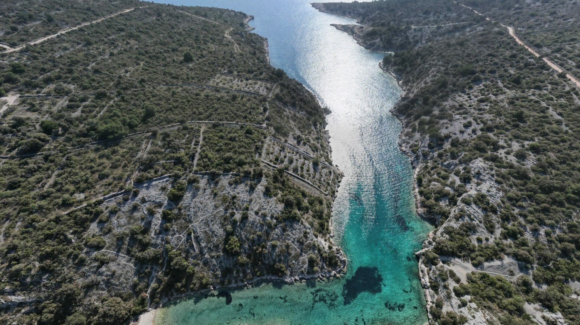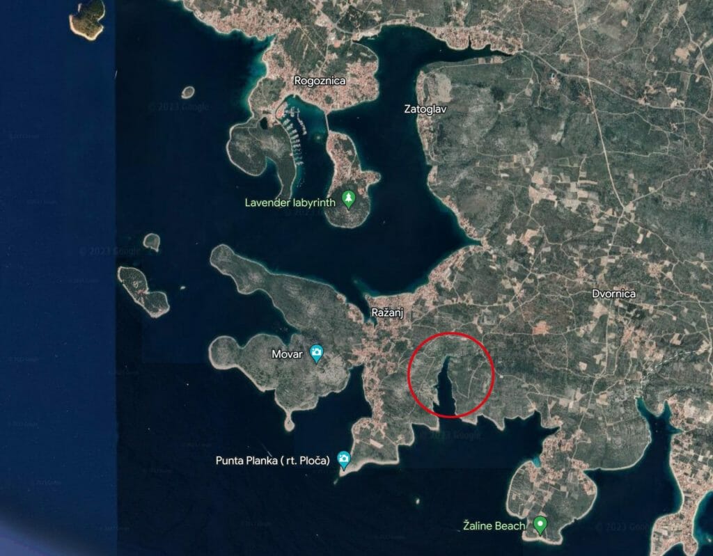Luftlinie sind es von Rogoznica rund 2 Seemeilen Richtung Süden! Hier ist eine der landschaftlich faszinierendsten Buchten unserer Region. Die Bucht Borovica schneidet tief ins Festland ein, und schützt vor allen Winden außer Süd.