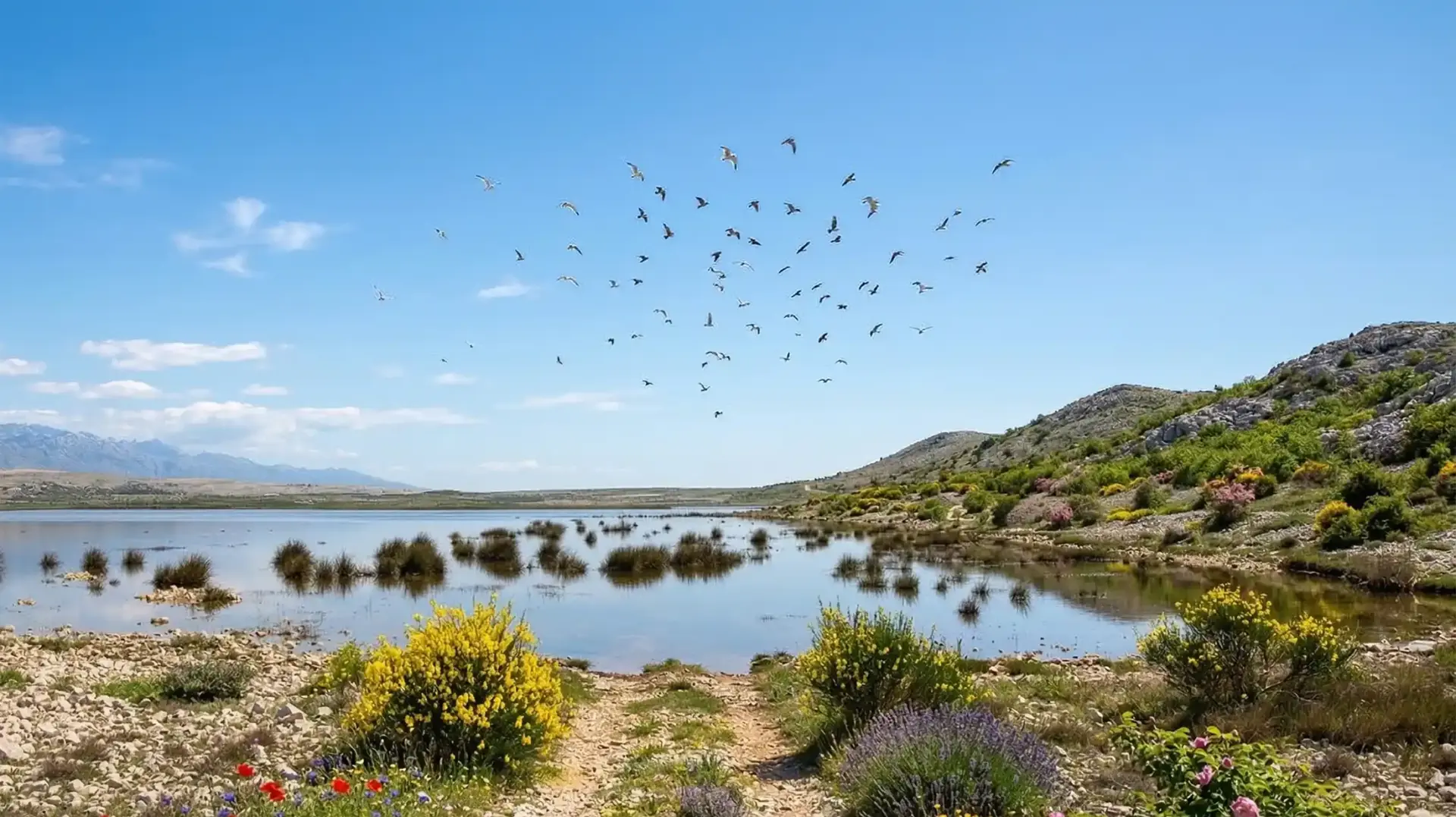 Wenn die Tage länger werden und die ersten warmen Sonnenstrahlen die Adria küssen, kannst du auf der Insel Pag ein beeindruckendes Naturschauspiel beobachten. Fernab der bekannten Kieselstrände und der berühmten Mondlandschaft erwacht das Ornitologische Reservat Veliko Blato zu neuem Leben. Für Tausende von Zugvögeln ist dieses Feuchtgebiet aktuell der wichtigste „Bed & Breakfast“-Stopp auf ihrem weiten Weg nach Norden.
