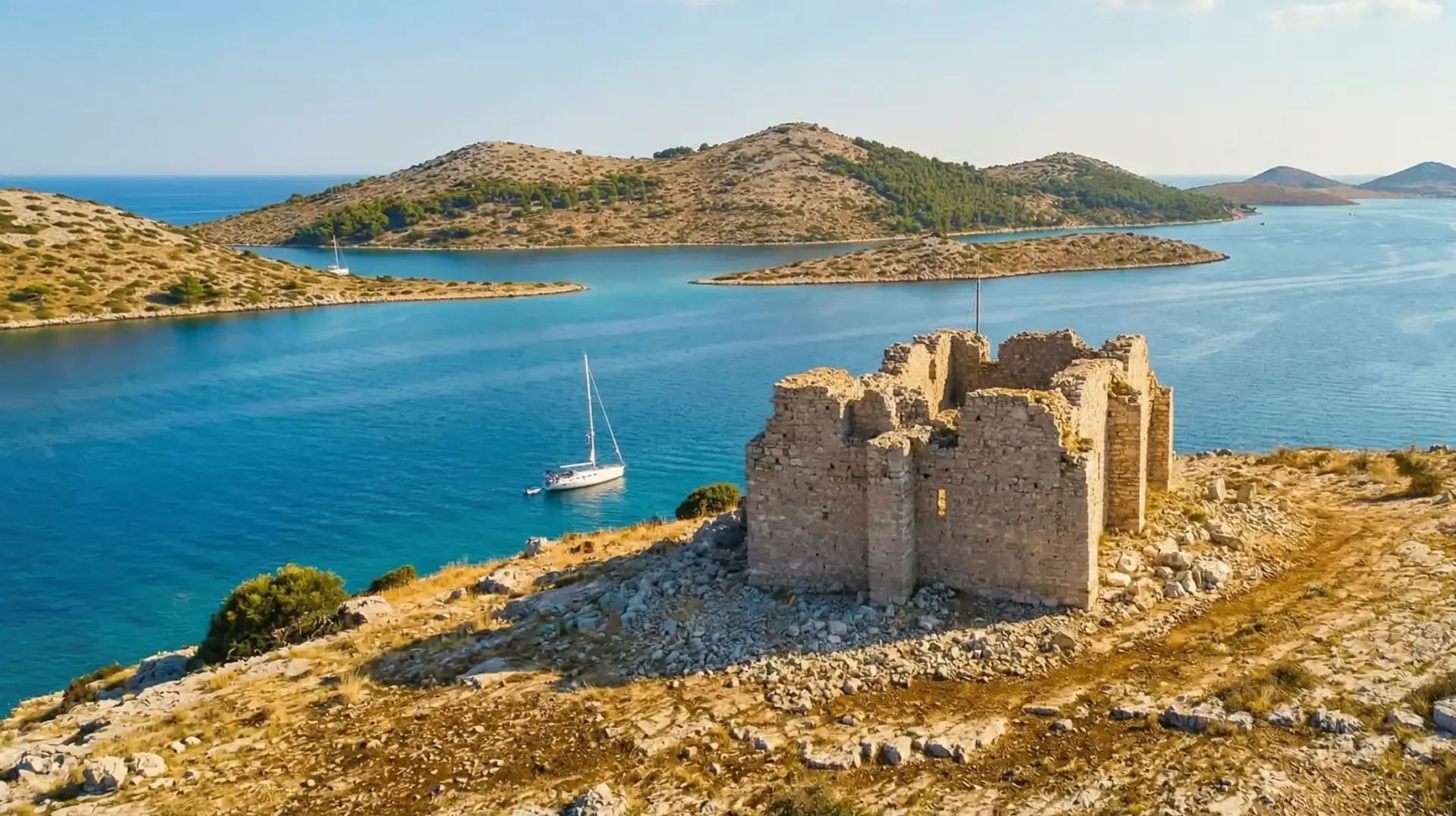 Die Festung Tureta (kroatisch: Utvrda Tureta) thront majestätisch auf einem Hügel der Hauptinsel Kornat und gilt als das bedeutendste historische Bauwerk des gesamten Nationalparks. Ihre Wurzeln reichen tief in die byzantinische Epoche zurück – erbaut wurde sie aller Wahrscheinlichkeit nach im 6. Jahrhundert.