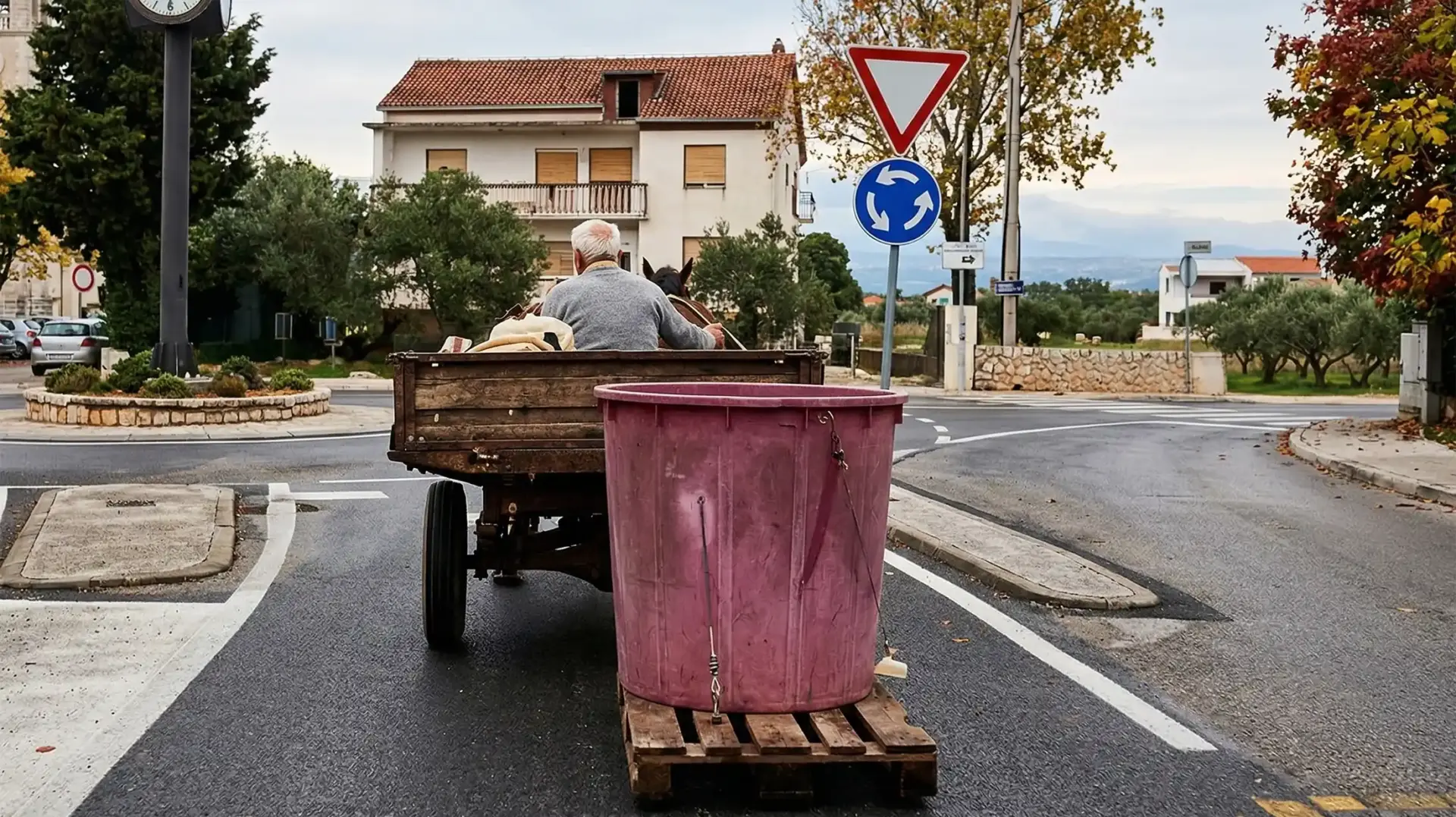 Wer braucht schon einen teuren Hightech-Anhänger, wenn man ein dalmatinischer Meister der Improvisation ist? Ein älterer Herr hat das Internet im Sturm erobert und zeigt uns, wie man mit Stil in den Kreisverkehr einfährt: Mit dem kleinen Traktor vorneweg und einer riesigen, rosa Bütte – absolut sicher und aerodynamisch auf einer Holzpalette hinterhergezogen!