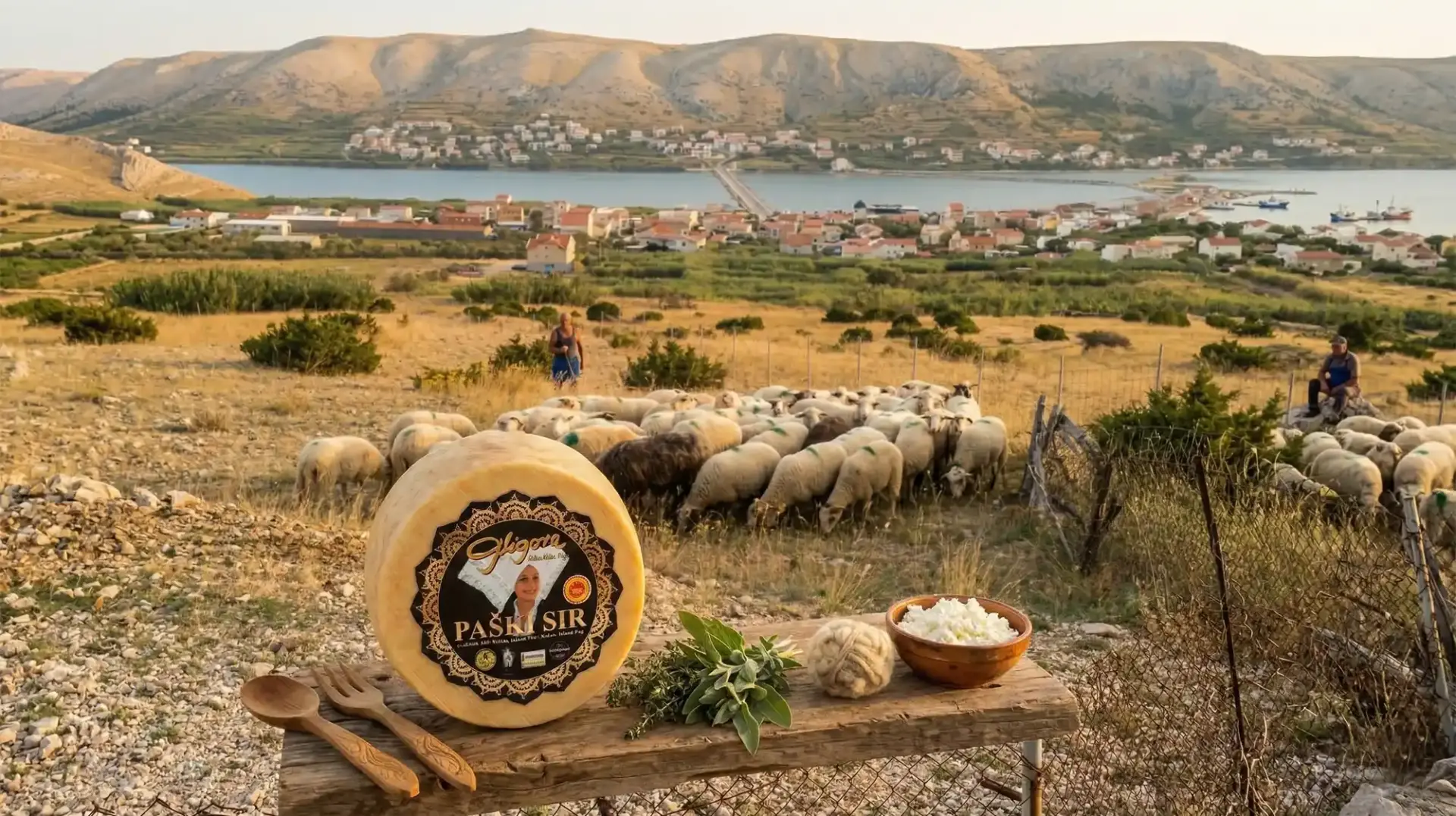 Der Pager Käse verdankt seinen einzigartigen Geschmack der „Bura“ – dem starken Nordostwind. Dieser trägt Meersalz auf die kargen Felsen der Insel, wo nur extrem widerstandsfähige Wildkräuter wie Salbei wachsen. Die Schafe fressen diese gesalzenen Kräuter, was der Milch eine natürliche Würze verleiht, die man nirgendwo sonst auf der Welt findet.