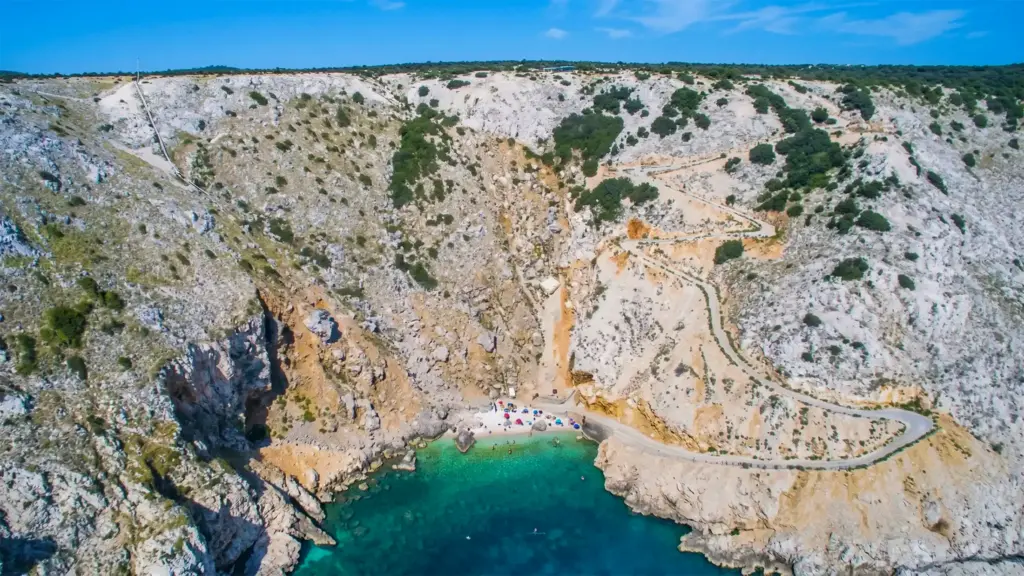 Orlec hütet eines der bestgehüteten Geheimnisse der Küste. Unterhalb des Dorfes, umrahmt von steilen Felsklippen, versteckt sich der Strand Mali Bok. Der Abstieg über den unwegsamen Pfad dorthin gleicht einem kleinen Abenteuer, doch die Mühe wird reichlich belohnt: Die einsame Bucht besticht durch unberührte Natur und leuchtendes, tiefblaues Wasser. Wer beim Schwimmen den Blick in den Himmel richtet, kann mit etwas Glück zudem die majestätischen Gänsegeier kreisen sehen, für die die Region berühmt ist.