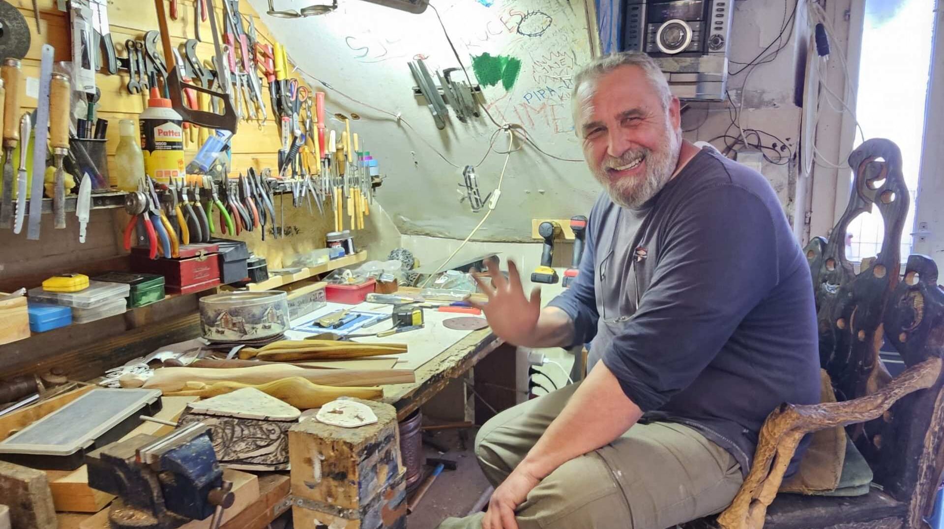 Šime Kursar lebt das ganze Jahr über auf der Insel, im Winter habe er Zeit, neue Werke zu schaffen, im Sommer gilt es, sich um die vielen Besucher seines Ateliers zu kümmern, so der sympathische Künstler.