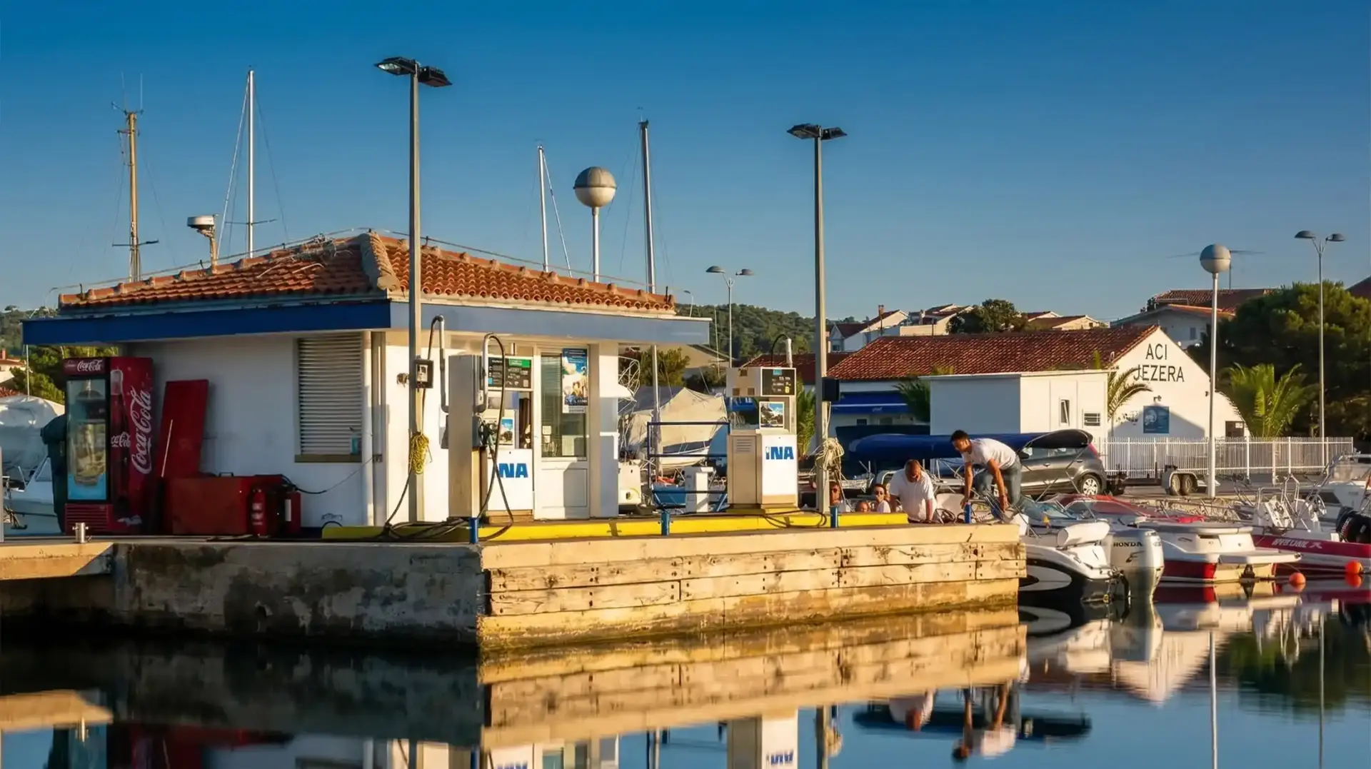 - Tankstellen die sowohl Straßenbetrieb als auch Seebetrieb haben (z.b.: Zaglav auf Dugi Otok) führen den regulierten Sprit oft nur auf der Straßenseite (für Boote unerreichbar, außer man geht bei 30°C mit dem Kanister spazieren)