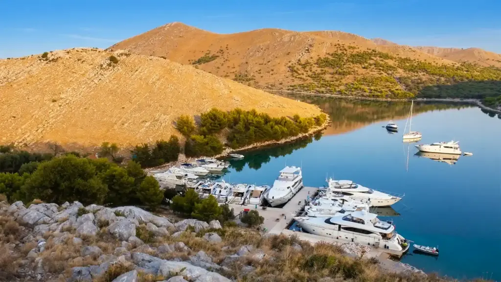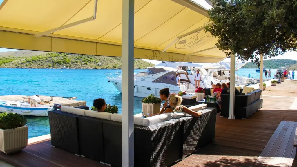 Die Bucht vor dem Restaurant bietet eine gut ausbaute Mole mit Strom- und Wasseranschlüssen (Muringleinen). Das Anlegen selbst wird hier den Skippern so leicht wie möglich gemacht und in den Bewertungen oft als besonders angenehmer Start in den Abend hervorgehoben.