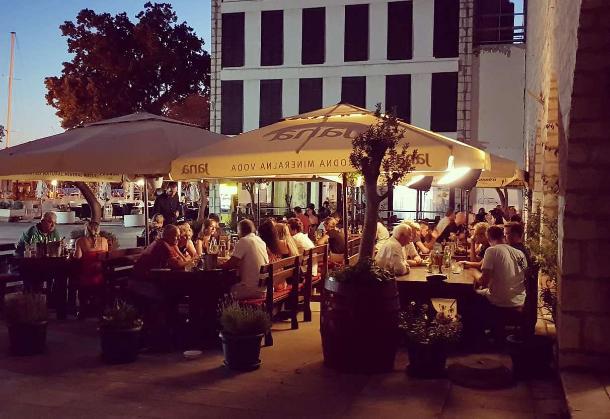 Direkt an der Hafenpromenade “Franjo Tuđman”, eingepfercht zwischen zwei typischen alten Ostblockbauten, unter eigenwillig gemauerten Arkaden findet sich ein absoluter Kulinarik-Geheimtipp in Šibenik: