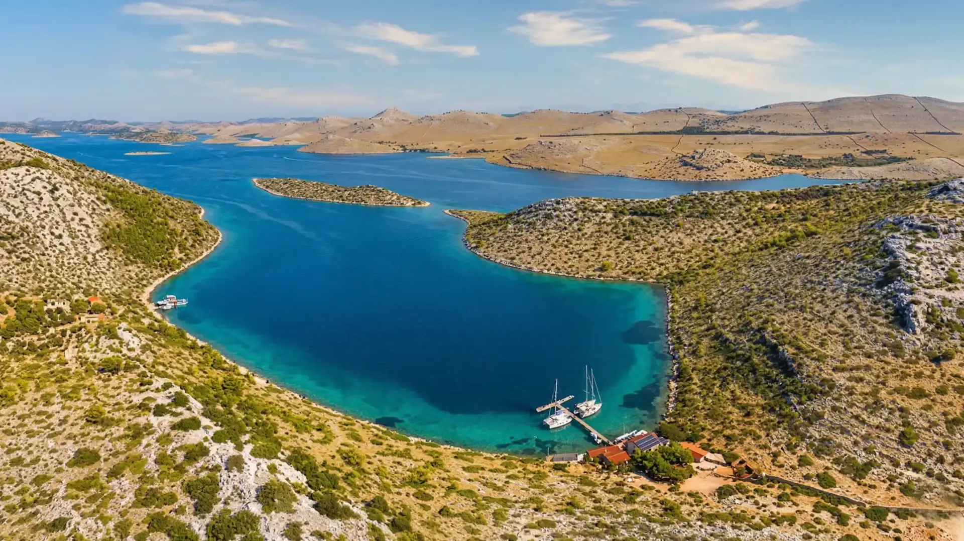 Zur berühmtesten Bucht in den Kornaten, der türkisblauen Lojena-Bucht sind es 10 Minuten zu Fuß. Sollte man in der Konoba Levrnaka dinieren, kann man das Boot problemlos einige Stunden am Schwimmsteg liegen lassen.