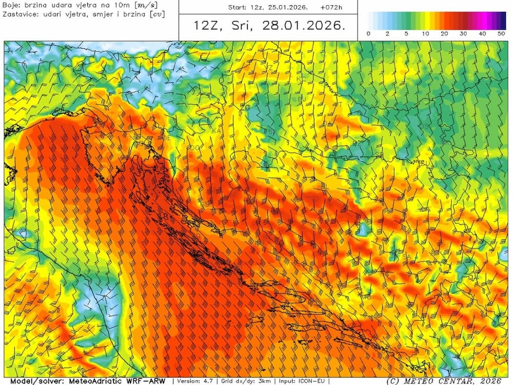 Der Staatliche Seewetterdienst DHMZ gibt eine aktuelle Warnung für den kommenden Mittwoch heraus:
