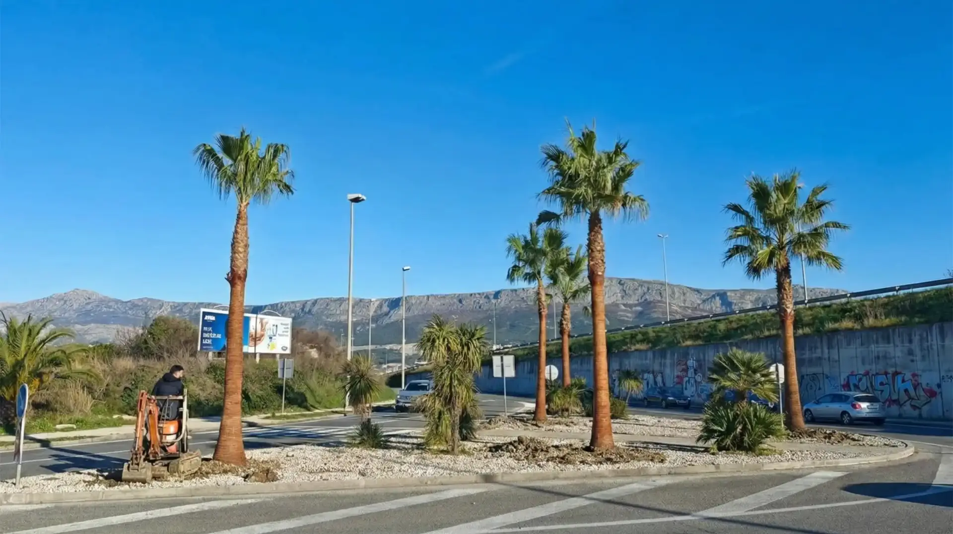 Der strategisch wichtige Verkehrsknotenpunkt, an dem die Poljička cesta auf den Zubringer ZNG (Zbor narodne garde) trifft, hat ein komplettes Makeover erhalten. Wo früher schlichte Verkehrsinseln waren, ragen nun imposante Washingtonia-Palmen in den Himmel.
